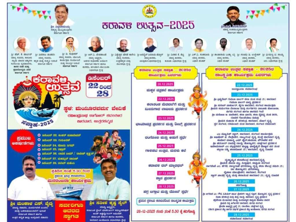 ಇ ಸಮಾಚಾರ ಡಿಜಿಟಲ್ ನ್ಯೂಸ್ (esamachara digital news)ಕಾರವಾರ(Karwar) : ಕರಾವಳಿ ಉತ್ಸವ ಸಪ್ತಾಹದ(Karavali Utsav Saptaha) ಎರಡನೇ ದಿನವಾದ ಇಂದು ಮಯೂರವರ್ಮ ವೇದಿಕೆಯಲ್ಲಿ(Mayuravarma Vedike) ನಡೆಯುವ ವಿಶೇಷ ಕಾರ್ಯಕ್ರಮಗಳ ವಿವರ.