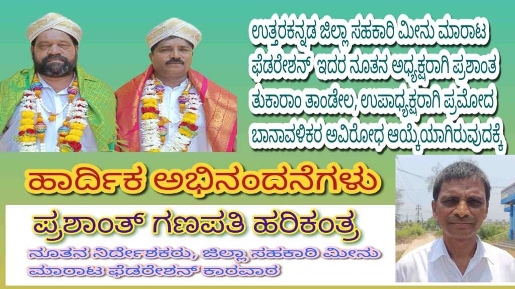 ದನ್ನು ಓದಿ : ಜಿಲ್ಲಾ ಸಹಕಾರಿ ಮೀನು ಮಾರಾಟ ಫೆಡರೇಶನ್ ಅಧ್ಯಕ್ಷರಾಗಿ ಪ್ರಶಾಂತ ತಾಂಡೇಲ, ಉಪಾಧ್ಯಕ್ಷರಾಗಿ ಪ್ರಮೋದ ಬಾನಾವಳಿಕರ ಅವಿರೋಧ ಆಯ್ಕೆ.